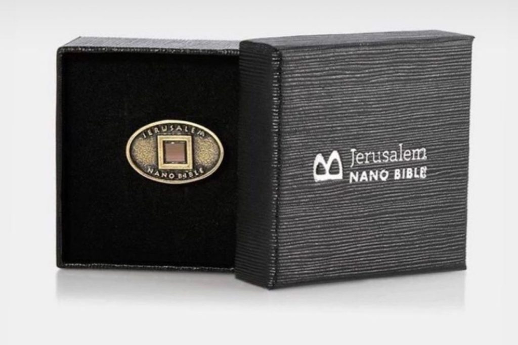 הננו־תנ״ך המקורי, המיוצר בישראל. כל פריט מלוּוה בתעודת מקוריות רשמית שלNano Bible.